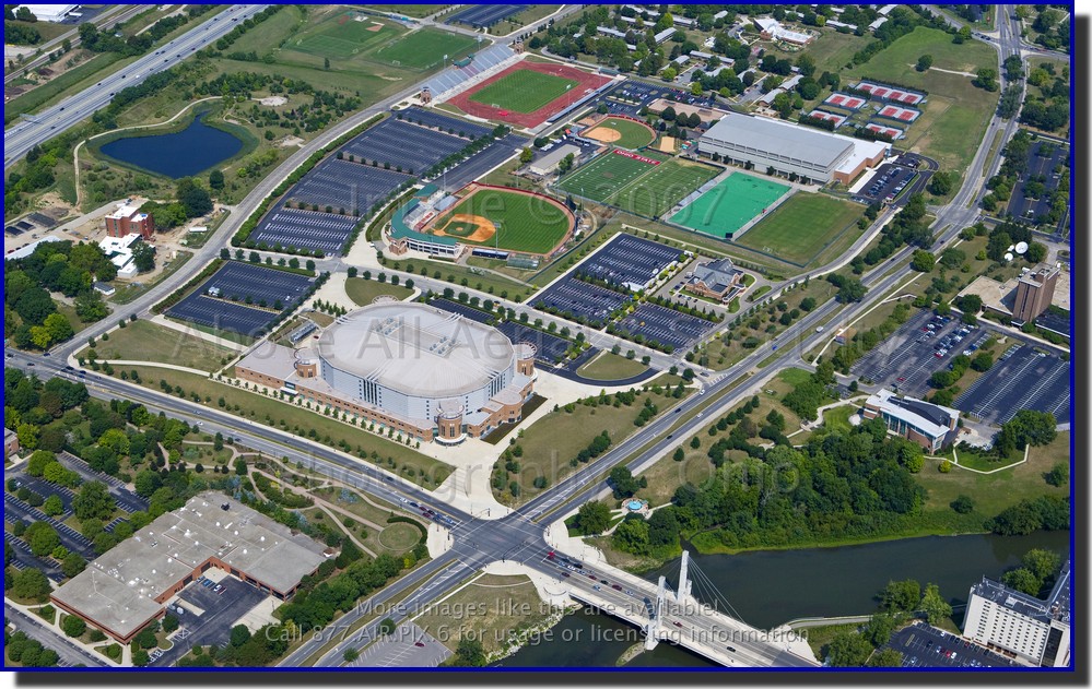 oddly shaped Richard E. Linder Athletics Center (directly above the