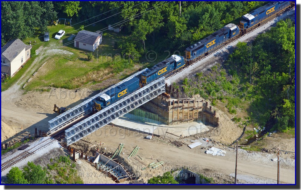 July 25-31, 2011 "Timing is Everything" It's always nice to be in the right place at the right time to get a cool shot such as this CSX train crossing a temporary railroad bridge near Columbus, Ohio. This particular photo, however, did not happen by chance. It required a lot of coordination between the manufacturer of the bridge, the railroad, and Above All - Ohio to make it happen. (And, as you can see, we succeeded in our efforts!) If you have an event that you'd like to capture from a unique perspective, give us a call - we'll do whatever it takes to be in the right place at the right time to make sure we preserve your unique moment! To view a larger version of this photo, click on it or click this direct link. |