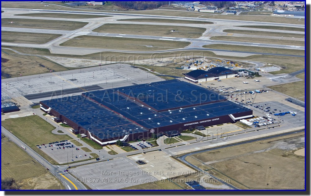 April 11-17, 2011 "IX Center" The International Exposition ("I-X") Center at the Cleveland Hopkins Airport hosts many events throughout the year. Very popular shows include the RV Supershow, the Boat and Fishing Expo, the Home and Garden Expo, and the Cleveland Auto Show. But, perhaps the most anticipated even of the year for kids of all ages is the I-X Indoor Amusement Park which runs the entire month of April (plus a few days in March and May). The centerpiece of the indoor amusement park is the giant ferris wheel, which can be seen sticking through the roof near the center of the facility. The wheel is enclosed by a glass structure allowing riders to get a glimpse of the airport next door. To view a larger version of this photo, click on it or click this direct link. |