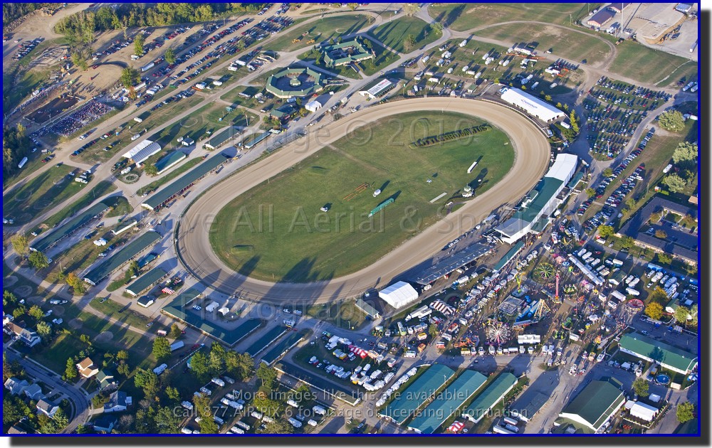 September 19-25, 2011 "Fall Fair" There are still a few county fairs going on as the summer winds down and the first day of autumn arrives in Ohio. This late evening photo shows the Delaware (Ohio) County fairgrounds during last year's fair. The 2011 Delaware County Fair runs through September 24, but perhaps the biggest day will be the 22nd when the well known harness racing event known as "The Little Brown Jug" takes place. Another popular event is the demolition derby - we featured an aerial photo of that event last October. Photos taken during the so-called "golden hours" (early morning or late day) like this one have nice, dramitic shadows giviving them depth and texture not found in mid-day aerials. To view a larger version of this photo, click on it or click this direct link. |