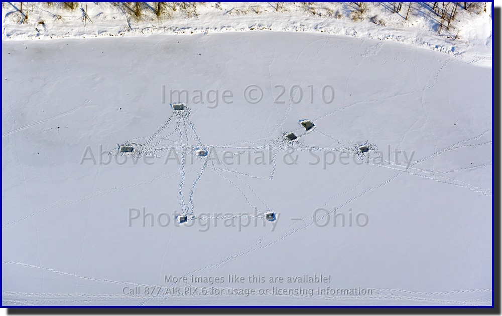 January 10-16, 2011 "Dot-to-Dot?" These holes drilled into a frozen lake near Pittsburgh sort of looked like a connect the dots puzzle from our airborne vantage point. With the "dots" connected by the footprints of the people fishing, we thought this looked like a figure skater (albeit with some imagination!). What do you see? To view a larger version of this photo, click on it or click this direct link. |