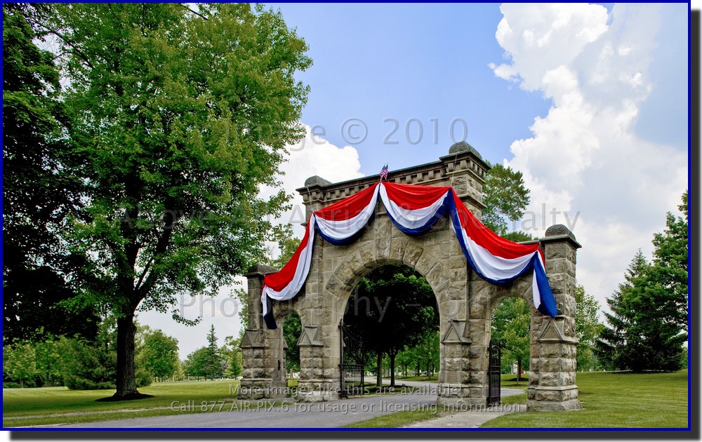 "Decoration Day" The entrance of Spring Grove Cemetery in Medina, Ohio, is draped with a red, white, and blue sash annually for Memorial Day. A Civil War monument inside the cemetery is also decorated for the holiday as can be seen in our Stock Photo of the Week last Memorial Day. We hope everyone takes some time today to remember those who fought and made the ultimate sacrifice for not only our freedom, but also for the freedom of people around the world. To view a larger version of this photo, click on it or click this direct link. |
