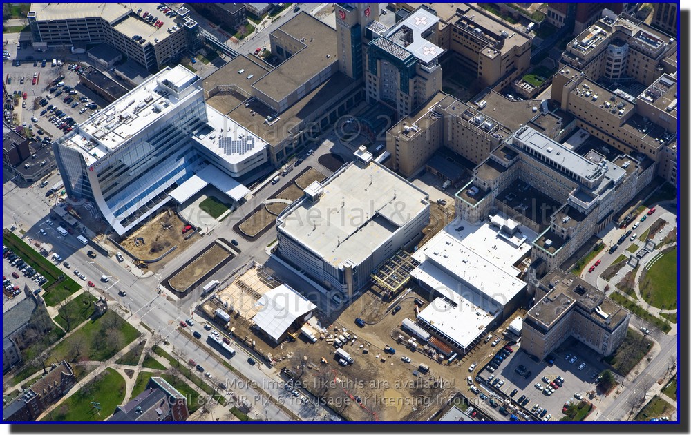 August 15-21, 2011 "Busy Place" The medical campus at The Ohio State University is a busy place this summer - many construction projects are underway simultaneously. A photo like this can only be taken at a very low altitude via helicopter. Above All - Ohio has working relationships with many helicopter pilots throughout the midwest - please don't hesitate to give us a call the next time you need something photographed low and close! To view a larger version of this photo, click on it or click this direct link. |