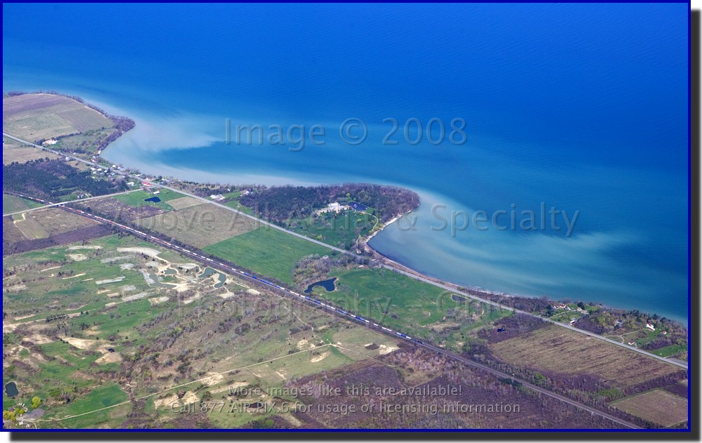April 25 - May 1, 2011 "Blue Water" Beautiful wispy patterns of sediments disturbed by strong spring currents really stand out in this aerial view of Lake Erie's south shoreline near Erie, Pennsylvania. The little bumps in coastline are apparently very sandy as sand is light in color and easily moved by the flowing water. To view a larger version of this photo, click on it or click this direct link. |
