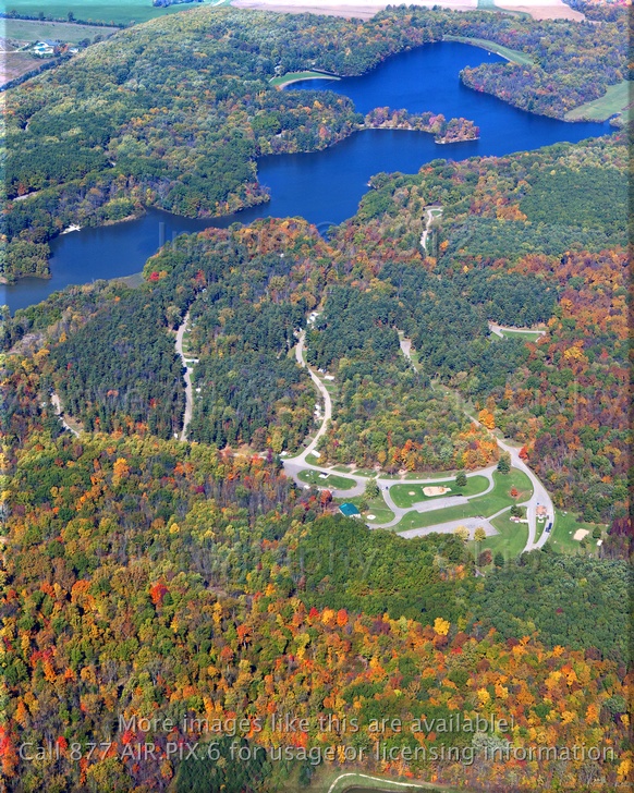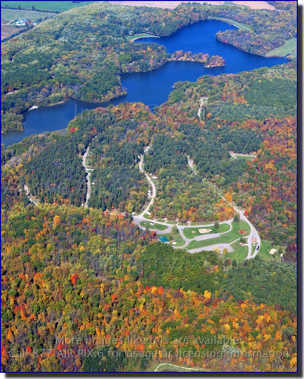 September 16-22, 2013 "Stunning Fall Colors" Autumn, 2012, was stunning. The fall colors were bright and beautiful and there were many days with perfect weather for aerial photography. This high oblique view of Findley State Park (near Wellington) was taken in early October, prior to what was regarded to as the "peak" fall color period in northern Ohio. Visible in this view is the main campground at the park and Findley Lake, which is reflecting the deep blue sky color (the color was not altered or artifically enhanced in this photo!). Schedule your fall aerials today soon to make sure we can get them during at or near the peak color times! To view a larger version of this photo, click on it or click this direct link. |