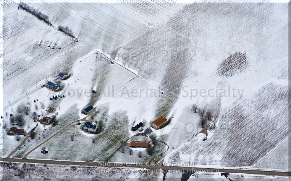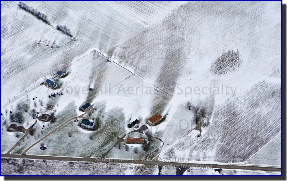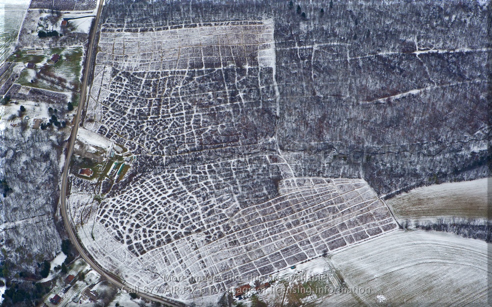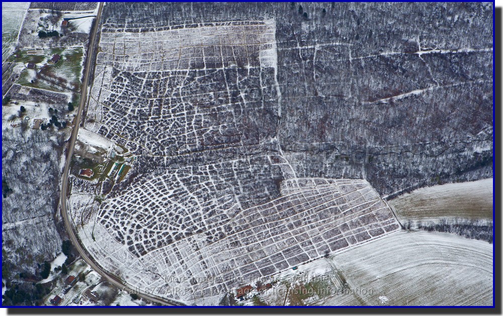 January 7-13, 2013 "Quilted Fields" Although our view out the window this time of year is somewhat mono-chromatic, winter aerials often show interesting patterns and provide views of things we can't see at any other time of the year. With the leaves gone from the trees and a light dusting of snow, paths between the trees are highlighted nicely in this aerial photo. The twists and turns of a small stream that runs through the woods can be easily seen in this photo as well. The paths and the stream would be impossible to see if the trees had their leaves. Winter also allows us to perform highly accurate infrared aerial deer surveys (and/or other game counts). Keep checking back here and on our infrared pages - we will be adding some samples and featuring a particularly interesting infrared image soon! To view a larger version of this photo, click on it or click this direct link. |