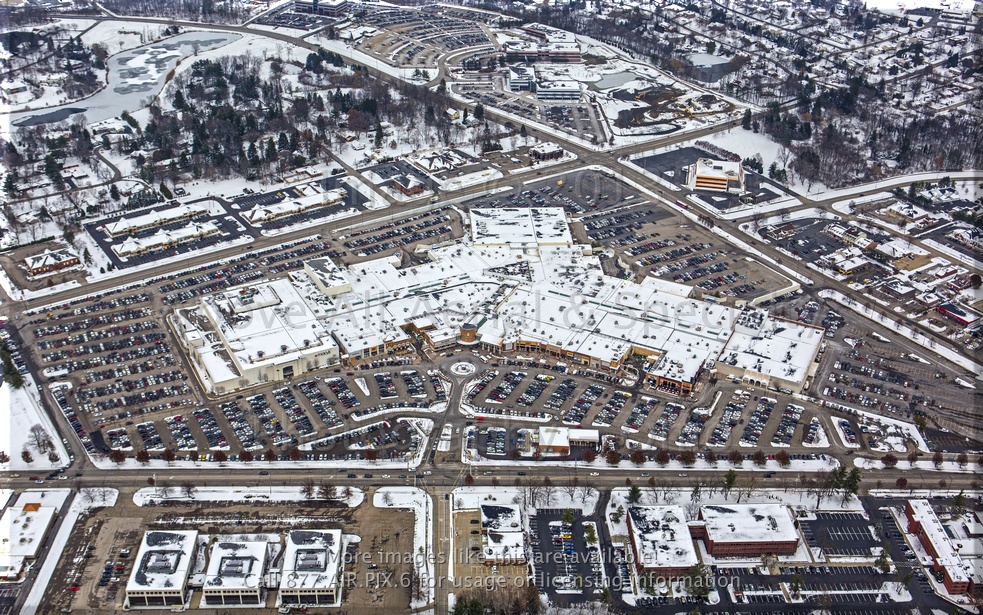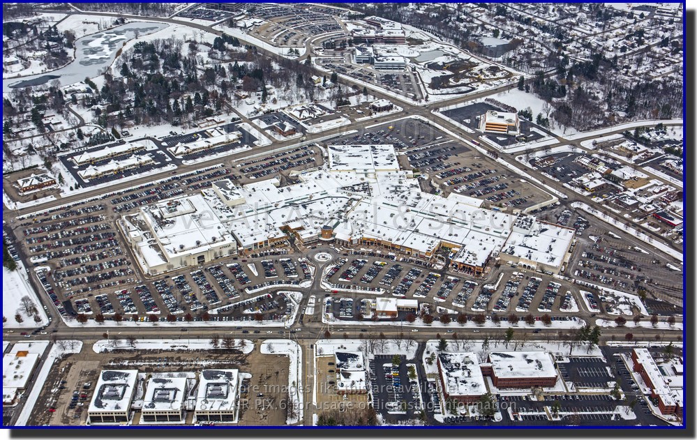 "Let the Shopping Begin" Snow and freezing temperatures couldn't keep "Black Friday" shoppers from packing the parking lot of the Summit Park Mall in Fairlawn, Ohio (just north of Akron), last week. This aerial photo of the mall was taken just after noon on what has become the busiest shopping day of the year. Quite often, the owners and property managers of shopping malls request aerial photos of their malls during the weekend after Thanksgiving so that they can show off their full parking lots to potential tenants and other investors. To view a larger version of this photo, click on it or click this direct link. |