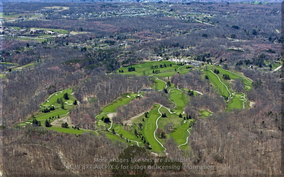 February 18-24, 2013 "Oasis" It's not quite golfing weather yet, but we thought this view of a nice green course would help ease the winter blues. This is Sleepy Hollow Golf Course, located in Brecksville, Ohio. (Brecksville is a southeastern suburb of Cleveland.) Sleepy Hollow is part of the Cleveland Metroparks system and is regarded as one of Ohio's most beautiful and challenging courses. In the full size version of this photo, a few early season golfers can be seen enjoying the course. Judging by this photo, taken in early spring a few years ago, the parks know how to take care of the grass. The trees are bare and the surrounding grassy areas are still brown and dormant after winter, but the grass on the course is beautiful and green. It really stands out from the air. To view a larger version of this photo, click on it or click this direct link. |