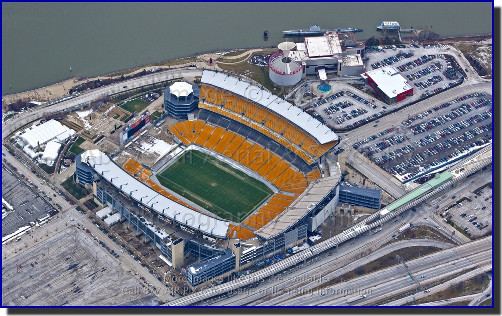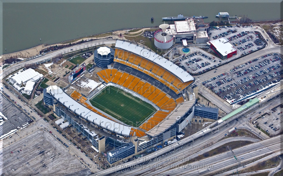 January 28 - February 3, 2013 "Frozen Ketchup?" Heinz Field Stadium in downtown Pittsburgh, PA, appears cold and deserted in this aerial photo taken last winter. The Steelers and 29 other NFL teams were "frozen out" of this weekend's big game in New Orleans between the Baltimore Ravens and the San Francisco Forty-Niners... The stadium was completed in 2001 and replaced the legendary multi-use Three Rivers Stadium as the home of the NFL's Pittsburgh Steelers. The new stadium was built right next to the old one at the location where the Allegheny and Monongahela Rivers meet to form the Ohio River. Also visible in this photo to the right of the stadium is the Carnegie Science Center. One of its exhibits - the Cold War-era USS Requin submarine - can be seen in the river. To view a larger version of this photo, click on it or click this direct link. |
