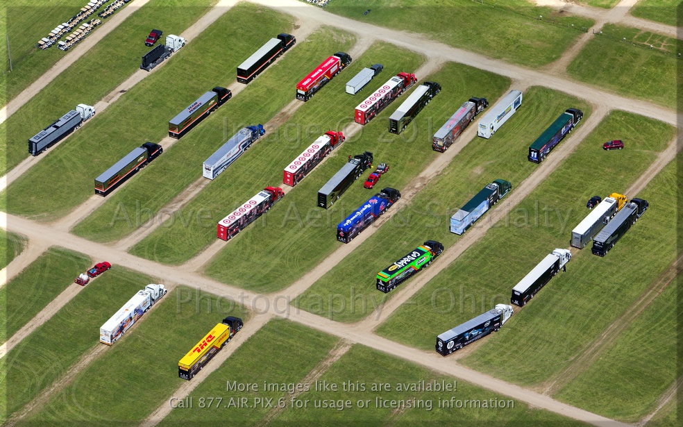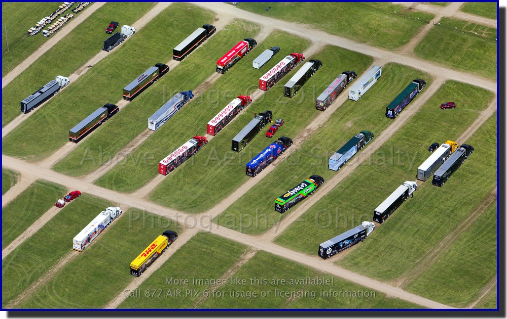 August 5-11, 2013 "Race Weekend Begins" This was the scene at Mid-Ohio Sports Car Course near Lexington, Ohio, early last week. These beautiful, brightly colored semi-truck transporters belong to the teams that participate on the Izod IndyCar Series racing circuit. Because space in the paddock area (the garage area, where teams prepare -- and repair! -- their cars) is very tight, getting these mobile work centers into place is a carefully orchestrated event. One by one, the teams' other talented drivers will move from this staging area into their assigned parking places behind the pits. Congratulations to popular driver Charlie Kimball for driving the number 83 car to victory lane in this year's race at Mid-Ohio. Charlie has Type 1 diabetes, but refused to let that condition keep him from his dream of being an IndyCar winner! To view a larger version of this photo, click on it or click this direct link. |