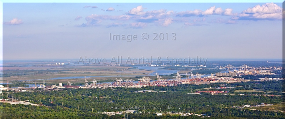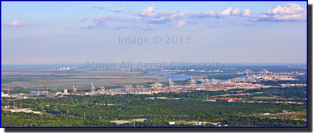 May 20-26, 2013 "Savannah Panorama" Although the downtown area is not the main focus of this photo, we're going to end our run of city views with this distinctive panoramic view of Savannah, Georgia. The historic downtown area is (barely) visible at the extreme right edge of this photo. The numerous cranes and colorful shipping containers along the Savannah River are indicators of the massive shipping operations that go on here. Huge ships come to this port from 150 different countries around the world due to Savannah's proximity to a large percentage of the U.S. population. Access to major highways and railways is easy from Savannah, which is crucial for both the collection and the distribution of goods. According to real estate giant CBRE, 44.1% of the traffic here is imports and 55.9% is exports. They also state that 88% of the cargo moving through the port are containers. Containers are metal boxes that can be stacked easily, then unloaded and placed directly onto truck trailer frames or rail cars which makes inter-modal transfers easy and efficient. For the record, we were in this area due to a huge project that we had entailing about 50 sites throughout the country. We worked under a tight deadline but we were able to deliver quality photos of all sites on time and on budget. Please give us a call if you have large projects - we have the experience and resources to take care of all of your sites, no matter where they are! To view a larger version of this photo, click on it or click this direct link. |
