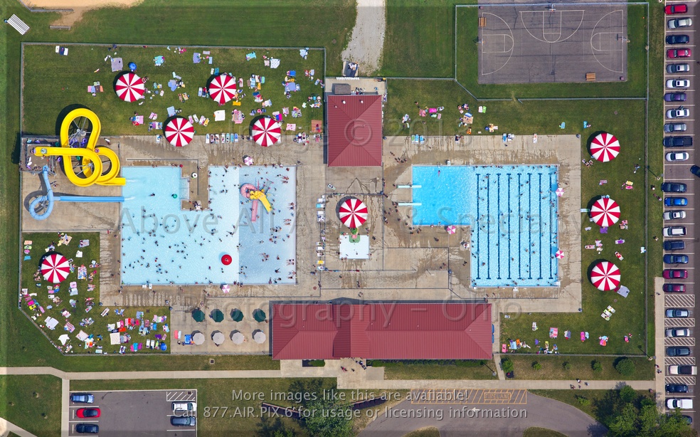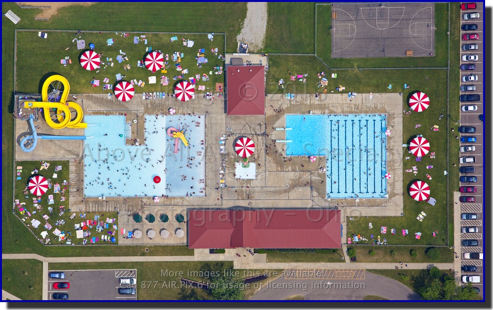 June 3-9, 2013 "Peppermints by the Pool?" School is out and summer is almost here! Soon kids (and adults!) will be packing pools like this one - the Hiawatha Park and Community Pool in Mount Vernon, Ohio - to beat the summer heat. The colorful towels, slides, and umbrellas caught our eye while we were flying by so we circled to take a few photos. However, the umbrellas reminded us of peppermint candies in this nearly vertical view so we thought this made the most interesting shot. Although we can provide true vertical imagery and aerial surveys which can be used in engineering applications, sometimes our customers just want something that appears to be looking straight down. Though it won't fool an engineer or a CAD program, a "near vertical" image such as this is a cost effective way to get the top-down view. Let us know what you need and see what we can do for you! To view a larger version of this photo, click on it or click this direct link. |
