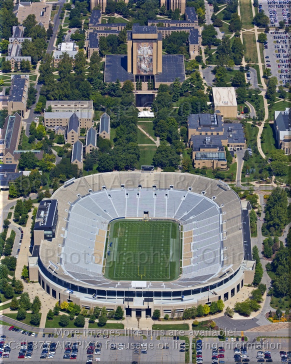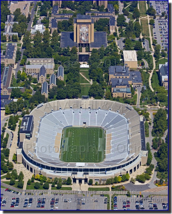 August 26 - September 1, 2013 "College Football Kickoff (It's Good!)" This week we are celebrating the return of college football. It's no secret that we here at Above All - Ohio are huge Ohio State Buckeye fans, but we thought we'd do something a little different this year and feature this cool view of another college sports icon - Notre Dame Stadium. The campus of Notre Dame is in South Bend, Indiana, near the southern end of Lake Michigan. Campus landmarks include the shiny Golden Dome of the Main Administration Building (which is not shown here, but was visible from MANY miles away as we approached the campus!) and the large mural depicting the resurection of Jesus entitled The Word of Life by Millard Sheets. Of course, most people don't know the mural by its proper name -- due to its alignment with the end zone of the football stadium and the depiction of Jesus with His arms stretched towards heaven, most people refer to the mural as "Touchdown Jesus." To view a larger version of this photo, click on it or click this direct link. |