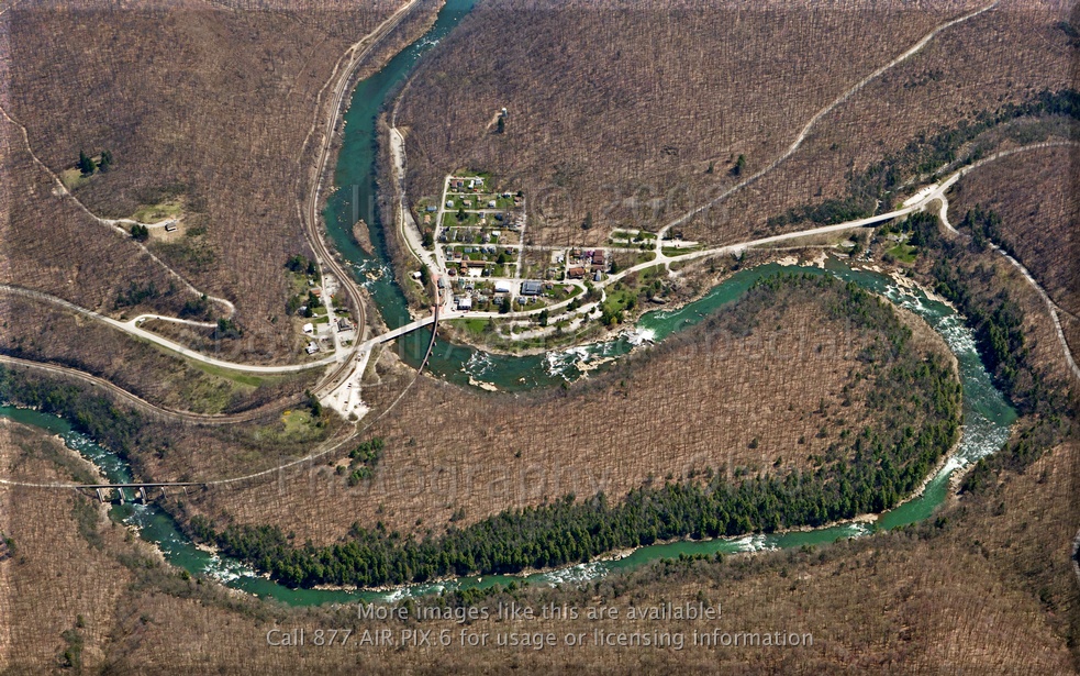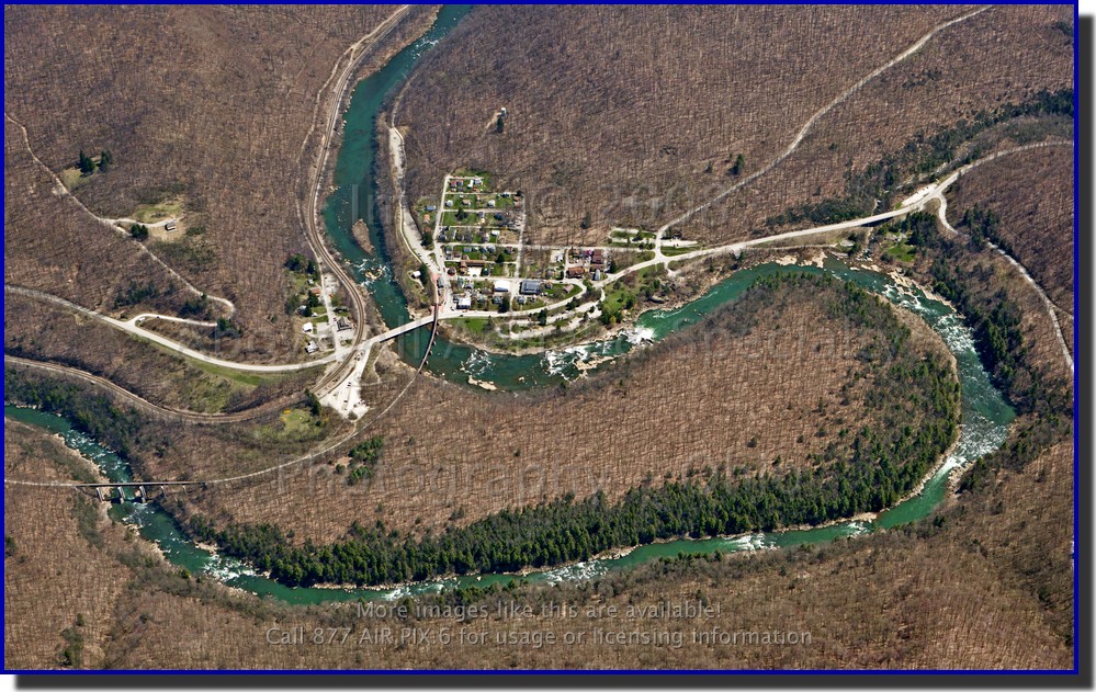 March 4-10, 2013 "White Water River" After a featuring photos showing some green grass for the past couple of weeks, we thought we'd go back to an aerial view that shows what the landscape looks like on a more typical early spring day here in the northern states. This aerial photo shows the small city of Ohiopyle, Pennsylvania, nestled in a bend of the Youghiogheny River. As can be seen, there are some nice white water rapids in the river in this area making it a popular destination for adventure seekers. One popular local business offering white water rafting trips is White Water Adventures. White Water Adventures is located within the Ohiopyle State Park and offers both family friendly "Class I and II" rafting trips as well as "Class III, IV, and V" trips for the more daring and experienced rafters. To view a larger version of this photo, click on it or click this direct link. |