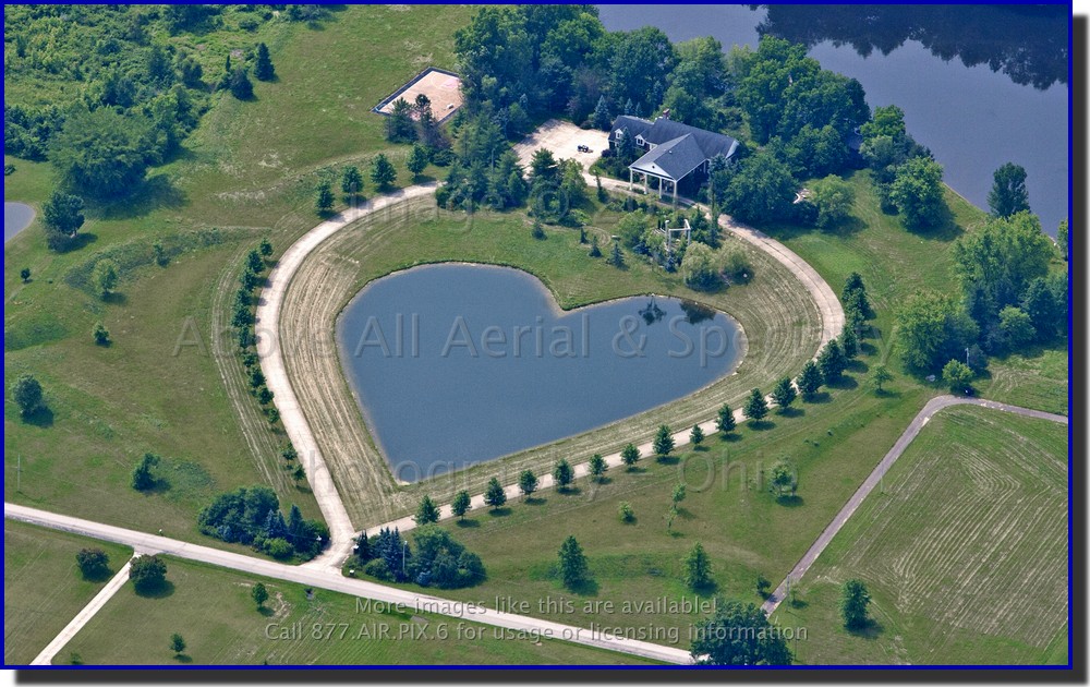 "What's Not to Love?" This giant Valentine is located between Strongsville and Columbia Station, Ohio (just south of Cleveland). We estimate it to be over 350' long and over 300' wide. We don't know if it was actually a Valentine's gift or not, but if it was, one question we'd really like to know the answer to is how does one top something like this the next year? To view a larger version of this photo, click on it or click this direct link. |