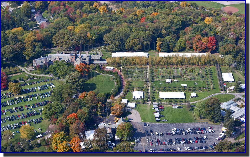 October 14-20, 2013 "Stan Hywet Hall" Fall colors were nearing their peak last year about this time as can be seen in this aerial photo of Stan Hywet Hall & Gardens, in Akron, Ohio. F. A. Seiberling -- the founder of the Goodyear Tire and Rubber Company (whose headquarters are also located in Akron) -- built this estate between 1912 and 1915. Many people believe "Stan Hywet" was the name of the owner, builder, or architect. However, "Stan Hywet" actually just means "stone quarry" in Old English dialect. As can be seen in this aerial view, the parking lots were packed for some kind of special fall event held at the estate around this time last year. (If you happen know what the event was, please let us know...) To view a larger version of this photo, click on it or click this direct link. |