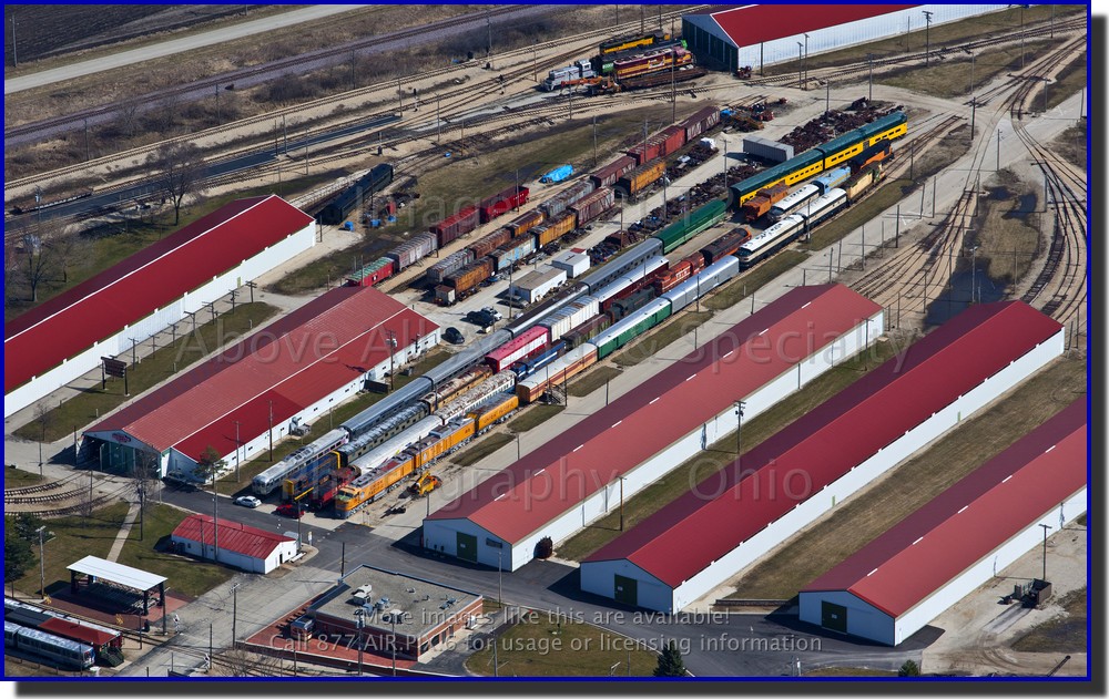 July 29 - August 4, 2013 "Best. Train. Museum. Ever." No, that's not the official motto of the Illinois Railway Museum, that's just what one very excited 2-year old boy declared after visiting a few years ago. The 166-foot long, bright orange-yellow Union Pacific Railroad #18 engine (seen here to the lower-left of center) was his favorite piece. The museum is located in Union, IL, which is about 60 miles northwest of downtown Chicago. It has hundreds of static displays and several operating trains that take visitors for short rides. The distinctive red-roofed barns house many of the older, more fragile cars and engines in their collection. If you plan to visit the museum, plan to spend (at least) an entire day! Kids of all ages will be fascinated not only by the sheer number of pieces in the collection, but also by ability to get up close to some very unusual and rarely seen types of rail cars and engines. Though this location is a little farther from home than we normally fly, we were able to swing by last year when one of our clients had multiple sites for us. As we often mention, when we have a lot of sites to string together, we can be very efficient and can provide our services affordably well outside of Ohio's borders. To view a larger version of this photo, click on it or click this direct link. |