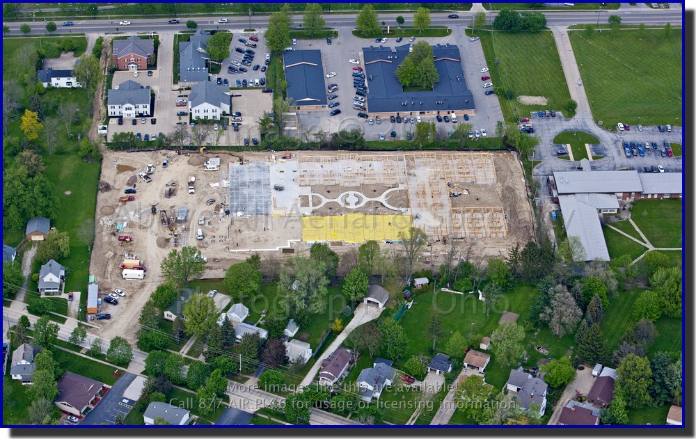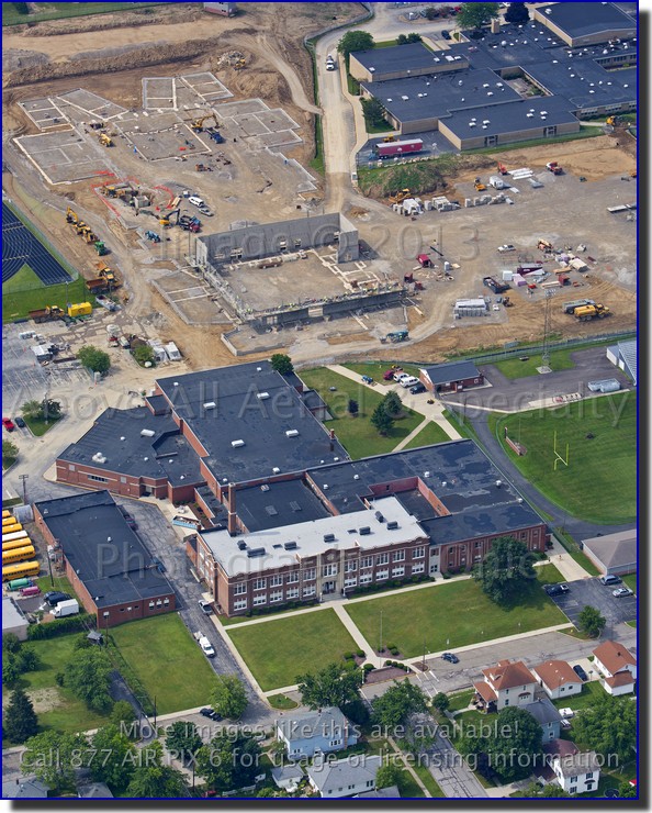 "Old School and New School" This week's aerial photo features a common site around Ohio (and, we assume...) many other parts of the country: a new school under construction. The construction industry (like most others) has been hit hard by the recession in recent years. Large projects have attracted many more bidders than in the past as companies sought to keep their workers working, even if it meant lower profits or, in extreme cases, just breaking even. While not a particularly good situation for the contractors, the extra competition helped keep bids low and made it a good time for budget-conscious school districts to look at replacing their aging and energy-inefficient buildings. Willard City Schools (in north central Ohio), was just one district in Ohio where voters seized the opportunity and approved the construction of a new high school. The existing school is in the foreground of this photo. In the upper right corner of this aerial portrait, behind the construction site, part of the Willard Jr. High School is visible. To view a larger version of this photo, click on it or click this direct link. |
