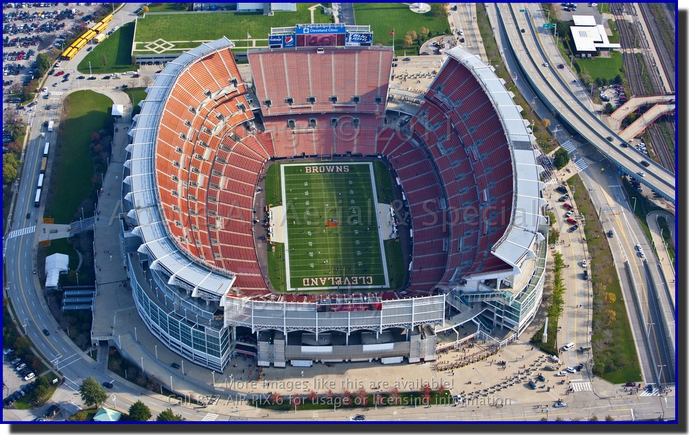 There are many reasons for and types of TFR's but "stadium TFR's" are some of the most maligned TFR's we have to deal with. In a nutshell, pilots cannot fly below 3000' above the ground within a 3 nautical mile radius of a major sporting event from one hour before until one hour after the event without a waiver. The worst part about them is that they aren't published for each event - pilots are required to just know about them! In general we try not to even fly on game days. If we have to fly, we try to avoid getting any closer than 5 miles from the event. As a last resort, we will schedule our flight either well before or well after the event. Yesterday was one of those times when we just had to get photos for our client, but the downtown Cleveland site was closer than comfort to the TFR. So, we opted to fly a little earlier than normal instead of making our friends at ATC (air traffic control) nervous. The upside to this was that after our photo mission was complete, we were able to take a quick tour of downtown Cleveland where Browns fans were tailgating and officials were preparing the field for the game against the Seattle Seahawks. The result was that we were able to add some pretty cool (and somewhat rare...) stock photos to our library... Below are just a few samples - please contact us if you are interested in seeing more photos and/or purchasing a license to use these images. |